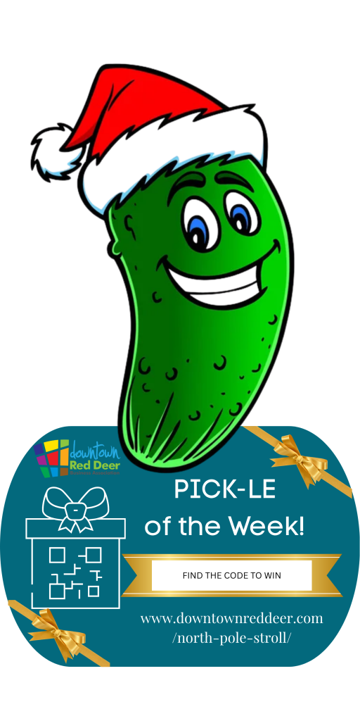 As part of North Pole Stroll, many Downtown Red Deer businesses hide pickles in their stores. Customers lucky enough to spot them are eligible to win a prize from that business, such as a discount or raffle entries.